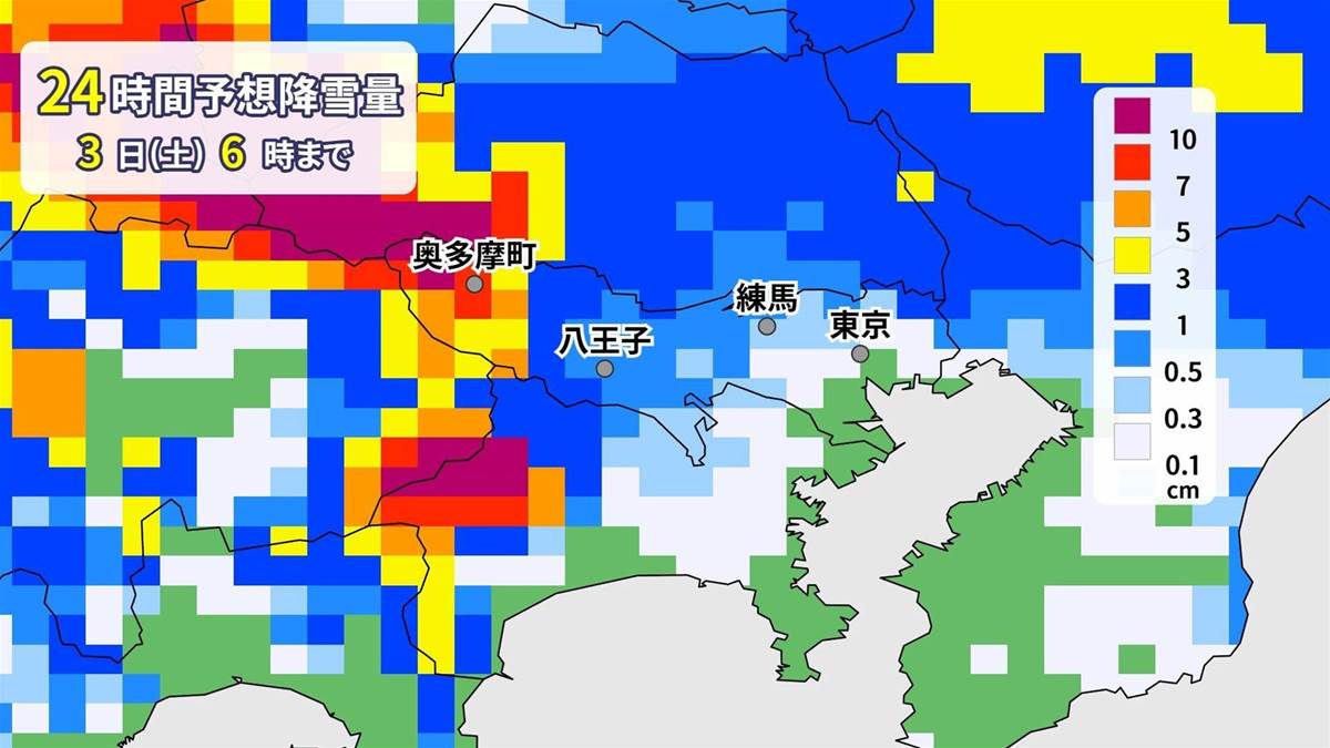 日時: 年始の1月2日(金)から3日(土)にかけて、日本全体で寒気が強まっています。場所: 日本海側のみならず、太平洋側、特に関東地方での積雪が予測されています。出来事の流れ: 寒気が強まり、日本海側で雪が続く中、太平洋側にも雪雲が広がり、関東では山沿いで大雪、平野部でも積雪の見込みです。結果: 東京では多摩地方の山沿いで5センチ、23区でも1センチの降雪が予想されています。