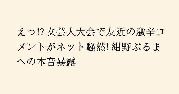 12月13日に生放送された「女芸人No.1決定戦 THE W 2025決勝」において、審査員を務めた友近の辛辣なコメントが話題となっています。当日は初めて審査員を務めた「霜降り明星」粗品の辛らつなコメントが目立ち、「賞金1000万円にしてはレベルの低い大会やった」と語りました。しかし、友近の紺野ぶるまに対する「安心して見ることができた」とのコメントが注目を浴び、ネット上では「粗品より辛らつ」といった反応が見られました。