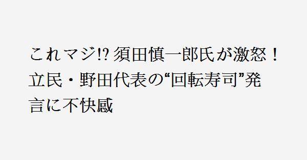 ジャーナリストの須田慎一郎氏が、ニッポン放送の番組で立憲民主党の野田佳彦代表の発言に不快感を示した。21日に高市早苗新総理の誕生を受け、自民党と日本維新の会の連立政権がスタート。野田氏は国民民主党の玉木雄一郎代表に対し「回転寿司は一度取り損なったら二度と回らない」と発言した。須田氏はこれを「勝手に作った格言」と批判し、野田氏自身が求心力を示すべきだと指摘した。