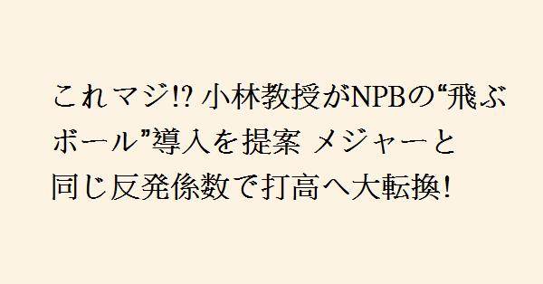 2023年、桜美林大学の小林至教授が、日本のプロ野球リーグにおける「投高打低」の状況を改善するため、MLB同様の反発係数の導入を提案した。日本プロ野球の12球団では、今季本塁打数が総計1032本、1試合平均0.60本と低迷しているのに対し、米国のMLBでは総計5650本、1試合平均1.16本と大きな開きが見られる。この違いは単なる選手の技術差でなく、反発係数などのルールに起因する。