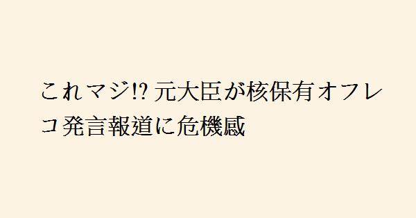 1、オフレコの発言が漏れて報道されたことは、メディア側に大きな問題があると思います。下村氏の「この国のメディアのあり方に、強い危機感を覚えています」は全くその通りだと思います。今回の件は、メディアのルール違反であり、世論のミスリードと他国の介入を招くことを目的とした意図的なリークです。今後の日本メディアへの国内、国際的信用の失墜は必至であり、また、この情報を元に特定の意見を持つものを排除しろと騒ぐ野党は、中国のような政治体制を目指すつもりなのでしょうか。今回の件で、核保有問題をタブー視せず、積極的に議論すべきであると考えます。 議論することで、賛成派と反対派がそれぞれ叡智をしぼり、真剣に核保有問題に向き合うことは大事であると考えます。 これによって同盟国、近隣諸国や西側諸国の日本に対する考えが鮮明になると考えます。