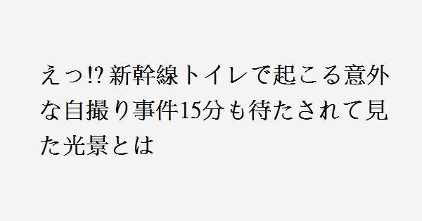 本当に公共のトイレは一定時間で鍵が開くようにすべきだと思う。もちろん中で操作すれば延長できる仕組みと、中で操作したことが外からもわかるようにして。それにしても10、15分とか出てこないのなら、中で何かあったと判断して車掌を呼んで当たり前な状況だと思うけど、よく黙って待ってるよね。