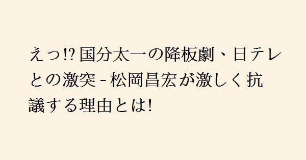 1、国分さんを呼び出した口実は「新しいプロデューサーにご挨拶を」でしたよね?一人で行ったら複数の弁護士を含む複数人に取り囲まれて「コンプラ違反があっただろう」と迫り、降板を告げた。録音は消させた。騙し討ちだったように感じます。その国分さんが「処分が納得いかない」と会見するのに、日テレさんの許可が必要だったでしょうか?国分さんは全ての仕事を降りて、TOKIOは解散しスタート社との提携もやめました。これだけの罰則に見合う「罪」がなんだったのかわからないままです。日テレがすべきことはもっと違うことなんじゃないでしょうか。