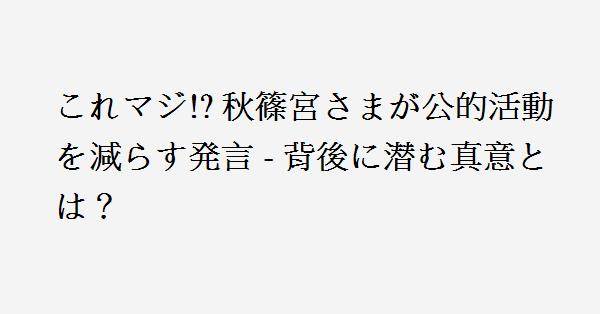 3、高いスキルやコミュニケーション能力と語学力が求められる公務は他宮家が担い、それでいて皇族費が最も高い宮家は見学や観光さながらの公務と名誉総裁職が主なので、公務数は減らして問題ないと思います。