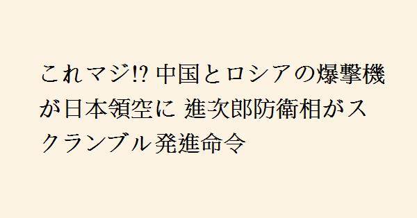 中国とロシアの軍用機による日本周辺での演習活動が増加し、航空自衛隊の負担が著しくなっている。2025年12月9日、中国とロシアの爆撃機が東シナ海から四国沖にかけて共同飛行を行い、対領空侵犯措置として日本の戦闘機がスクランブル発進した。小泉進次郎防衛相は、これが相手国のインフラや国土を破壊する「戦略演習」と警鐘を鳴らす。また、年度のスクランブル発進回数が704回に及び、その9割が中国とロシアに対するもので、経済的負担も増加している。