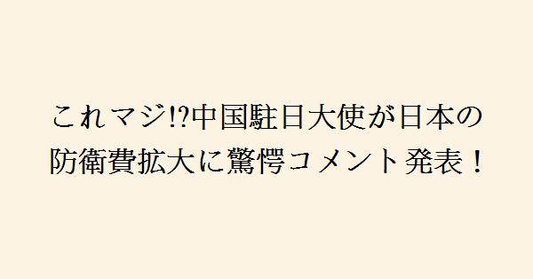 そもそも、日本と中国の関係を良好するための橋渡しをするような役割をもつ、駐日大使が率先して日本にケンカを売るような言い方をする時点でどうなのか?少なくとも防衛費に関しては、中国が領海侵犯違反等、何もしなければこちらから手出しをすることはないのだから、騒動を大きくしているのは自分達だといい加減に理解してほしい。まあ、それがわからず、自分達は何をしても許される・正しい行いをしていると勘違いしているから、他国にケンカを売りまくるような事をしているのでしょうね。