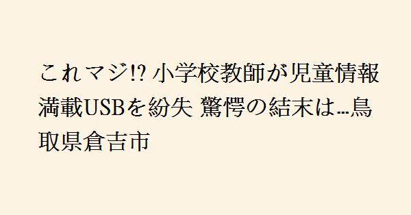 2023年12月12日、鳥取県倉吉市の社小学校で教諭が児童の個人情報を含む2本のUSBメモリーを紛失しました。USBには2021年度から2024年度までに教諭が担任した96人分の児童の成績や写真が保存されていました。教諭は職員室でUSBを使用後、筆箱に入れ児童玄関付近に置き忘れ、その後筆箱のみ発見され、USBは紛失したままです。