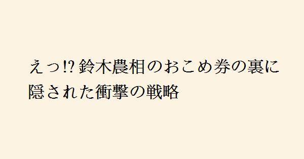 3、鈴木大臣、最初はお米券を!と仰っていたのに最近では、批判を受けてか、自治体の判断に任せるもので、お米券に限らないと発言が変化しています。500円券で、440円分のお米購入可。国民が納得しないですよね。生産者を守ると言う選択は、鈴木大臣にはないんだと思いました。