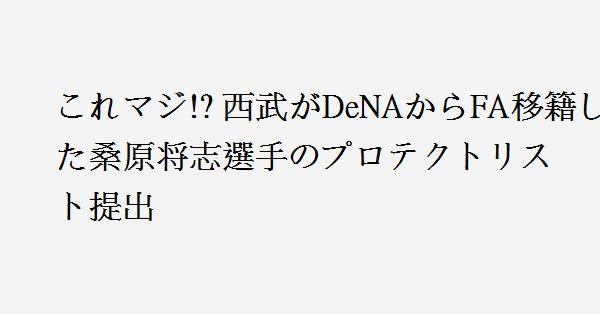 西武ライオンズは、フリーエージェント(FA)で横浜DeNAベイスターズから移籍した桑原将志外野手(32)に対する人的補償として、28名のプロテクトリストをDeNAに提出した。西武の広池浩司球団本部長(52)は、22日に桑原選手との契約が正式に公示されたため、翌日の23日にプロテクトリストを提出したことを明らかにした。詳細や選手の傾向には触れなかったが、「28名というプロテクトの枠は多くなく、悩んだ」と説明。