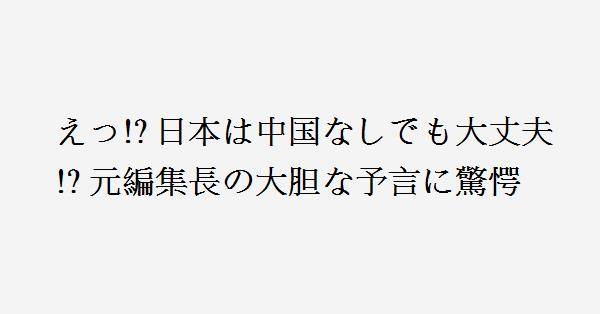 3、日本の内需率は80%超えています。外需率全部が中国ではありません。経済分析に弱いメディアはもっと真実の数字を国民に知らしめるべきです。それと海外純投資残高は世界一です。今後行うべき経済の高度化や自然災害対策、インフラ整備、防衛産業、宇宙航空、深海資源、メディカル、半導体など多くの取り組みを成功させ中国以外の国家との連携すればいいです。介護戦略はサポート機器も含めフィリピンとの連合、海底資源は米国、カナダ、英国、豪州などと。パターン別にパートナー設定が重要。米国依存度も下げないとトランプのようなリスク顕在化がある。