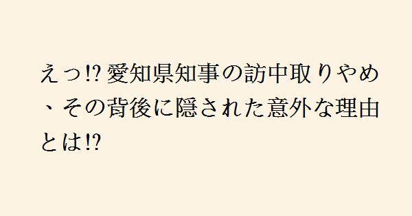 11月10日、愛知県の大村秀章知事は予定されていた2026年2月の中国訪問を取りやめると発表しました。中国側から「延期してほしい」との連絡があったことが理由で、これは日中関係の悪化が影響しているとされています。訪問予定だったのは江蘇省と天津市で、双方の企業や地域との友好関係を深める目的がありました。大村知事は「非常に残念」と述べつつ、日中関係の改善に努める意向を示しました。