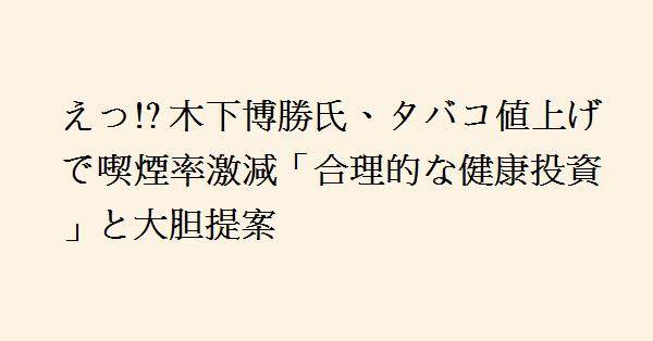 木下博勝氏は、自身のインスタグラムで日本の禁煙対策について意見を述べました。日本の喫煙率が15%台であることを指摘し、2035年までに10%未満に減少させる目標が掲げられているものの、達成は難しいと感じていると述べました。木下氏は、日本の喫煙対策が中途半端であり、タバコの価格を上げることで喫煙率は確実に下がると主張します。