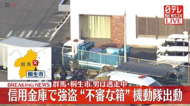 群馬県桐生市で2日昼頃、信用金庫に単独で男が押し入り、現金を奪って逃走する事件が発生しました。桐生信用金庫梅田出張所のカウンターを乗り越え、片言の日本語で従業員に金の要求を行った後、現場に無造作に置かれた箱が爆発物の可能性を考慮し、機動隊が出動する事態となりました。店内に客はおらず、この状況で男は黒系ジャンパー、目出し帽を着用し逃走中。現在、警察が行方を追跡しています。現場は桐生駅近郊の住宅地に位置します。