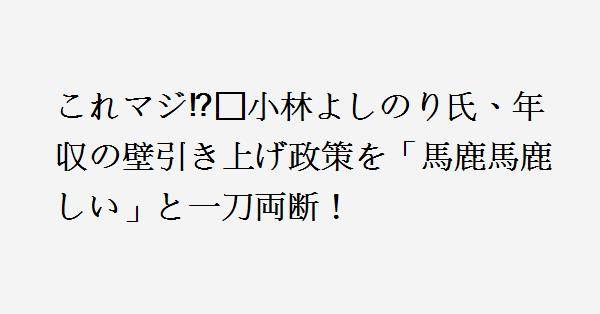 小林よしのり氏は、国民民主党が進めた「年収の壁」の引き上げ政策を厳しく批判した。21日、自身のブログで述べたもので、同政策が自民党・高市早苗総理と国民民主党・玉木雄一郎代表の会談で合意されたことを背景にしている。この政策の内容は、被扶養者の年収制限を103万円から178万円に引き上げることで、「働き控え」の緩和を狙ったものだ。