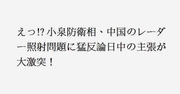 中国による「レーダー照射問題」は、12月10日、日中間の緊張を再燃させている。日本の小泉防衛相は、中国側が提示した音声データに対し反論を行い、両国の意見が衝突。中国側は、日本があたかもデマを流しているような批判を展開。事件は、日本の自衛隊機が中国艦船よりレーダー照射を受けたとされる事象が引き金で、双方の公式声明が異なる内容を発表。