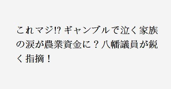この動きに対し、八幡議員はギャンブル依存症対策が不十分である点や収益の倫理的問題を指摘。また、JRAの収益を無理に農業の財源にすることへの批判も行った。