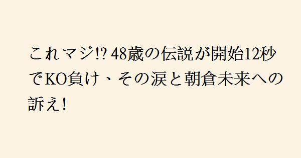 3、4秒KOに12秒KOと大阪の伝説2人が負けた。路上の伝説も、リングの上ではそうはいかない、と言うより年齢的な問題です。48歳で戦う事が伝説です。