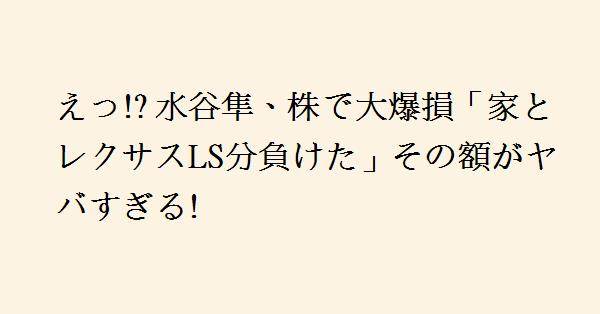 2、水谷隼さんの大損アピール、鵜呑みにしていいんですかね。日経平均が1万円以上も上がっているのに、彼ほどの資金力と経験で負け続けるのは不自然です。下手に勝ちを自慢して『成金』と叩かれるより、負けを晒して親近感を買うほうが、タレントとしてのイメージ戦略としては正解ですから。実際はちゃっかり儲けているんじゃないの?