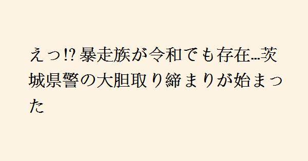3、空いていて走りやすい茨城県内をよくドライブしますが、いい年した親父がブンブンと集団でダサいバイクに跨りイキリ倒してるのを見ると本当に腹が立ちます。中には小さな子供を後ろに乗せてる者もいました。取り締まりの際にはぜひ、社会の迷惑であることと、みっともないこと、危険なこと、全てセットで教えてあげてください。