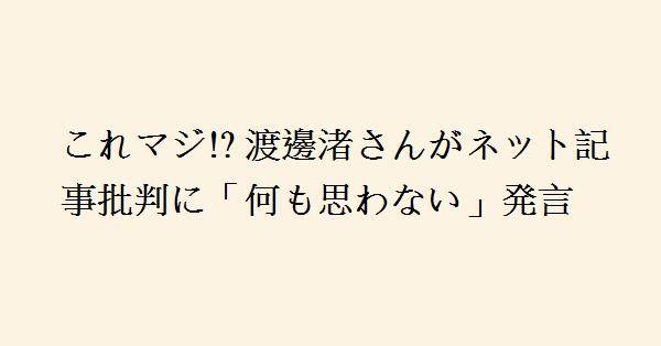 しかし、渡邊さんはコメントを求められると「何も思わない」と一言。また、「こんなものよりも、もっとニュースにすべきものがあると思っていて。こんなの何も社会の役に立ちません」と述べ、批判に対して毅然とした態度を示しました。