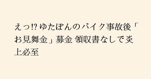 3、ゆたぽんが交通違反していたかどうかも、交通事故にあって入院していることも他人にとってはどうでもいいことで、なんで見舞金を募るのかが意味がわからないのだけど、誰か教えてくれます?