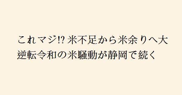 2024年初頭、静岡県内で米の価格が5kgで2000円台から急上昇し、2025年1月には3800円を超えた。この米価高騰は「令和の米騒動」と呼ばれ、全国を巻き込む混乱を引き起こした。政府は備蓄米を放出し、流通の円滑化を試みたが、米の価格は再び上がり続けた。JAグループが農家への支払いを過去最高にするなど、仕入れ値が高いため値段が下がらず、米不足から米余りに至る状況で価格の高止まりが続く。