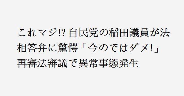 2、稲田議員っていろいろありましたが法律家なんですか?極めて適切なご意見をおしゃっていられると、私は思います。大臣の時もこうであれば良かった、というのは余計な一言でしょうか。それにしてもいい質問だったと思います。