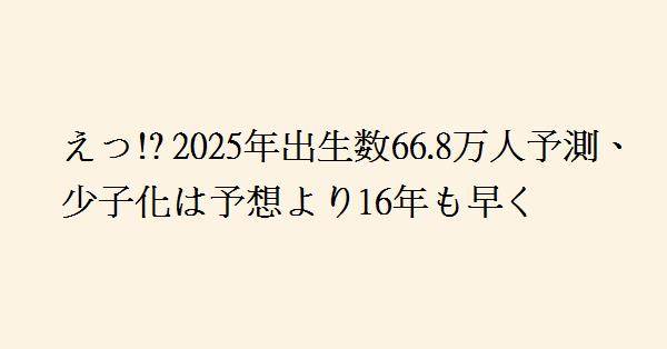 2025年に出生数が過去最少の約66.8万人にまで減少すると予測。これは国の推計より16年も早く進行する少子化を反映している。政府は高齢者優遇政策を続け、介護負担の拡大を先送りする一方、高額療養費制度の月額負担を現役世代に引き上げる方針を示し、SNSでは批判が噴出。税や保険料の増加で可処分所得が減る現役世代から、「子どもを持つ経済的余裕がない」とする声が多数上がり、少子化対策に失敗すれば社会保障基盤の揺らぎが懸念される。
