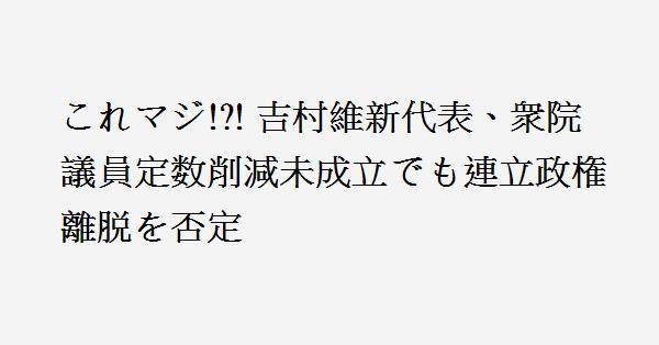日本維新の会の吉村洋文代表(大阪府知事)は、2023年10月20日に記者団に対し、衆院議員定数削減法案が来年の通常国会で成立しなかった場合でも、連立政権から離脱する計画がないことを明らかにしました。自民党と維新の会が法案可決に必要な過半数を参院で保持していない状況に対し、吉村氏は「成立しないからといって連立離脱かというと、それは違うのではないか」と述べました。