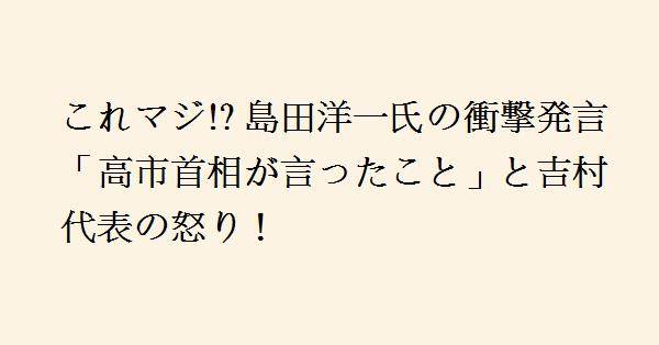 吉村さんもそんな高市さんと島田さんのやりとりを実際は知らないはずでしょう。だから島田さんがさもウソをついているかのように、高市さんの名誉に関わると言うのもどうなのかなと。結局は言った言わないのタダの水かけ論かと。かなり島田さんが維新に物申してましたから、吉村さんも内心腹立っていたのかと。それはそうと、れいわの大石さんは筋違いな上にとにかくうるさい。こないだの国会でも一人でまくしたてていた議員もれいわでしたが。とにかく目立ちたいのかしらないが、、立憲の中では江田さんがマトモなことは良く伝わってきました。