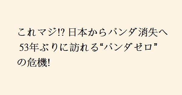 3、表向きは友好とかで取り繕ってるが、日本から幾らパンダって体裁で、中国にお金が流れてるかって事はっきりと報道少ないよね。別に多額の税金でパンダが国民の税金の使い道として本当に正当で国民に対して平等性が有るかって処もこの際議論して欲しいとも感じる。