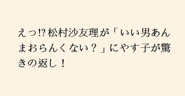 元乃木坂46の松村沙友理が出演したテレビ番組で、「いい男があまりいない」という私見を述べた。番組は「大きい声では言えないけど、小さい声なら言える女子会」をテーマにしていた。松村は、「いい女はたくさんいるが、いい男は少ない」と口にしたが、これに対しお笑い芸人のやす子は「出会ってこなかっただけではないか」と指摘した。松村は自身の恋愛経験が30歳から始まったことを考慮し、納得する様子を見せ、「30オーバーではいい男性が結婚している」というイメージを持っていることも語った。