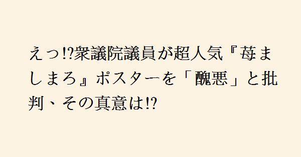 12月8日、衆議院議員の藤原規眞氏が自身のXで、アニメ『苺ましまろ』のキャラクターを使用したポスターを「醜悪」と批判。ポスターには小学生の女児の水着姿が描かれており、藤原氏はこれが人身売買や性搾取の助長につながると警告しました。ネット上では賛否両論で、特に公的に認可された作品に対する藤原氏の厳しい言葉に反発する声も多数上がっています。