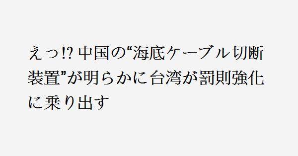 台湾周辺での海底ケーブル切断事件が相次ぎ、これに対する罰則が強化されました。これに関する法律改正案では、故意にケーブルを損壊した場合、1年以上7年以下の懲役に加え、約4900万円以下の罰金を科すことが可能になり、犯罪に使用した船舶や機械設備の没収も規定されています。今年1月と2月に、中国人乗組員を乗せた船が台湾付近でケーブルを切断する事件が発生しています。