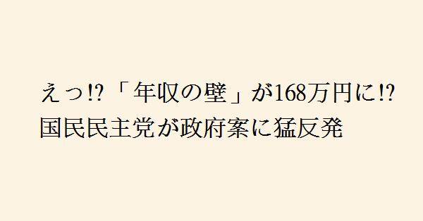2、現状の「年収の壁」の控除は160万が最大で、今回の案はそれを168万にしようというものです。しかし、これは「年収200万以下」の人限定であり、現役世代の恩恵はごく僅かとなっています。玉木氏の「これではダメ」も、壁の額よりこの制限に関して何も触れられていない事を問題視してる物かと。やはり「最低限の生活に必要な額は課税しない」という制度の目的に鑑みれば、このような年収による制限は撤廃するべきです。