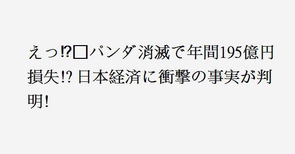 2025年6月、和歌山県白浜町の「アドベンチャーワールド」にいたパンダ4頭が中国に返還され、さらに2026年1月には上野動物園の双子のジャイアントパンダが中国に返還されることで、日本国内にパンダがいなくなる。この状況は、経済効果の研究で著名な関西大学の宮本勝浩名誉教授が分析し、パンダ不在による経済効果のマイナスは年間約195億円に達すると試算された。