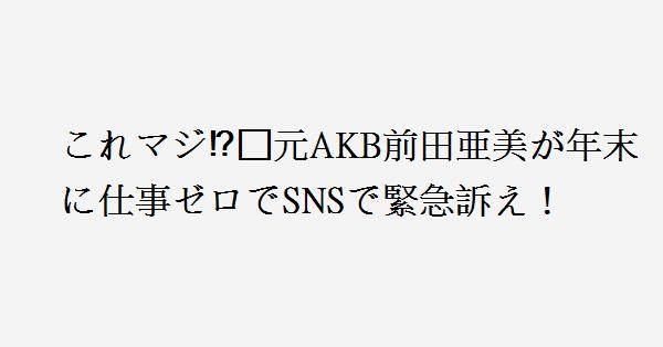 元AKB48メンバーで女優の前田亜美(30)が、2023年10月21日に自身のSNSプラットフォームX(旧ツイッター)を更新し、年末に向けた仕事がなく困っている状況を率直に訴えた。彼女は「仕事がありません!年末なのに!!!」と書き込み、さらに「仕事ください!こんな暇なの私くらい!こりゃあかん………」と続け、必死さを表現した。