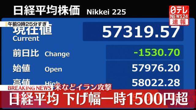 2、今回の急落は、単なる一時的な調整というよりも、地政学リスクの本格化を市場が織り込み始めた動きと言えそうです。2日朝の東京市場では、日経平均株価が一時1500円超下落。イスラエルとアメリカによるイラン攻撃、そしてイラン側のホルムズ海峡封鎖警告は、原油供給の大動脈を直撃しかねない重大な材料です。原油価格の急騰懸念は日本経済にとって特に重く、企業収益や個人消費への悪影響も避けられません。戦況次第では、さらなる下押し圧力がかかる可能性も十分にあります。
