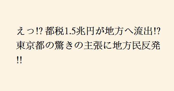 3、東京都民は何を言っているのか。法人税が不公平なのです。法人税を国税にして経済力に比較的比例している消費税を地方税にしてしまえば東京都民の税金をうんぬんとは言われなくなります。法人の利益に対する法人税が都道府県に入るシステムが悪いのです。