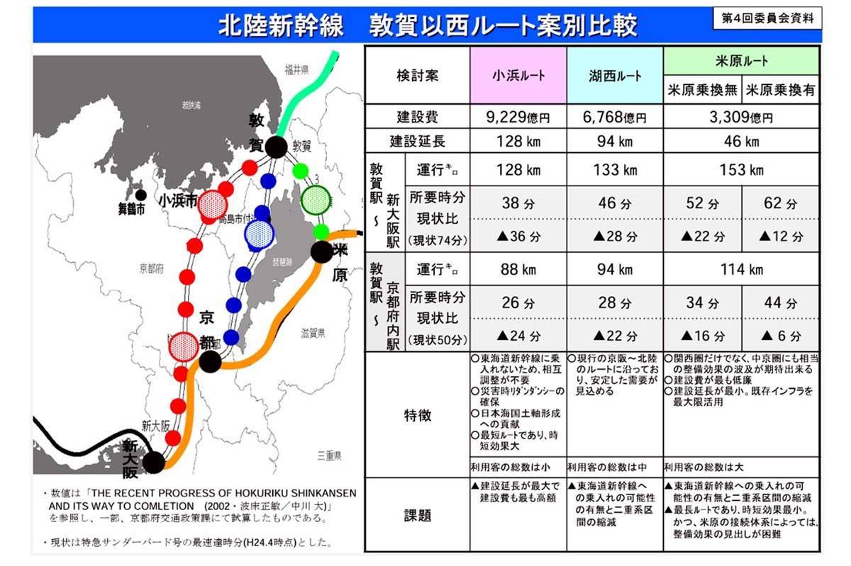 2、整備新幹線には多額の国費と地方税が掛けられます。費用対効果や費用便益比の計算結果を最重要視するべきだと思います。小浜・京都ルートは建設費の高騰を受けて費用便益比が着工基準の1.00を大きく下回る見込みです。費用対効果や費用便益比を突き詰めていくと、滋賀県内を通る3ルートに絞られるのではないかと思います。