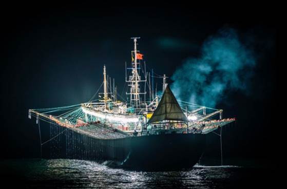 イカの個体数は乱獲により崩壊の臨界点を超える恐れがあり、海洋生態系に広範囲な影響を及ぼす可能性がある。さらに、中国漁船の船内で人権侵害や賃金恐喝も報告されている。