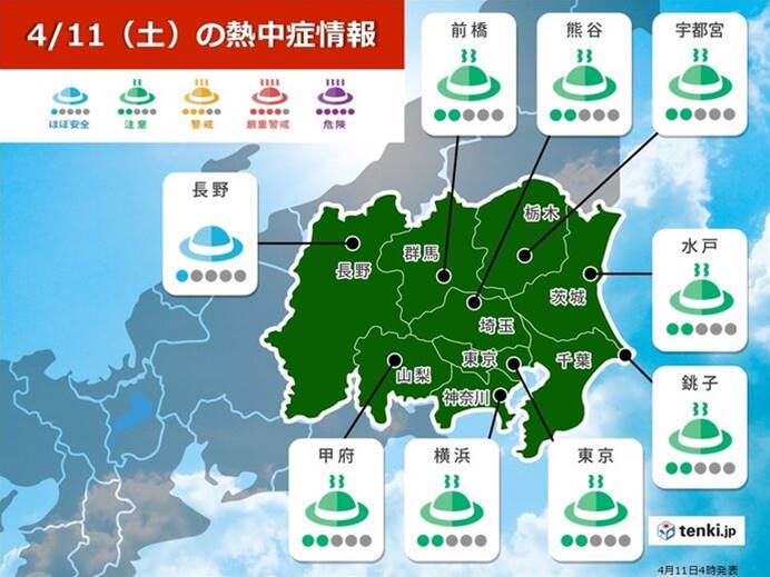 関東で30℃に迫る暑さが予想され、今年初の夏日となる地域が続出しています。特に11日、東京都心やさいたま市、熊谷市では28℃を記録する見込みで、これまでの涼しい日々から一転し、6月下旬から7月上旬並みの気温に。内陸部では真夏日に迫る可能性があり、熱中症リスクが高まっています。最低気温も前夜からほとんど下がらず、神奈川県三浦市では17.5℃、千葉県館山市では18.7℃を記録しました。熱中症の初期症状や対策が強調され、こまめな水分・塩分補給、適度な休憩が推奨されています。また、症状悪化時には速やかに医療機関を受診することが呼びかけられています。