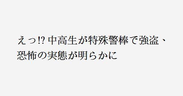 4、中高生とありますが、高校生の年齢は何歳くらいなのでしょうか?罪状だけなら、ほぼ実刑を受ける内容ですが18歳と17歳では結構刑罰の内容が変わりそうな気がします。しかし、凶器を用意して複数人で襲っている訳ですから、極力重い罪にしてもらいたいものです。