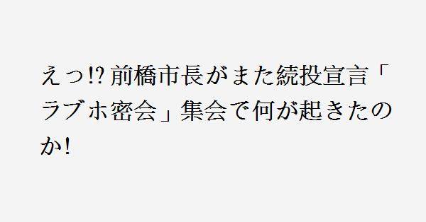 市民は市長である私の言うことだけを聞いておればいいっていう感じに聞こえてきたし、以前知事も仰ってたけど、自分に甘い傲慢な考えを持ってるんだと思います。ツッコミどころ満載ですが、10回以上ラブホに通っていて何もないなんて無理ありすぎだし、不祥事を起こしての返り咲きなんてあり得ないことです。近日中に知事の定例会見が楽しみだし、何より前橋市民の良識ある審判に期待してます。