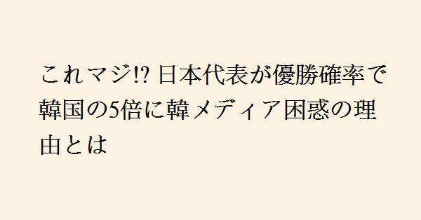 日韓のサッカーにおける格差が話題になっています。海外メディア『Squawka』が近々発表した北中米ワールドカップの優勝オッズによると、日本の優勝オッズは100倍で全参加国中16番目、韓国は500倍で34番目とされています。韓国メディア『Xports News』はこの結果に驚きを隠せず、韓国のオッズを「ひどい過小評価」と見なしました。