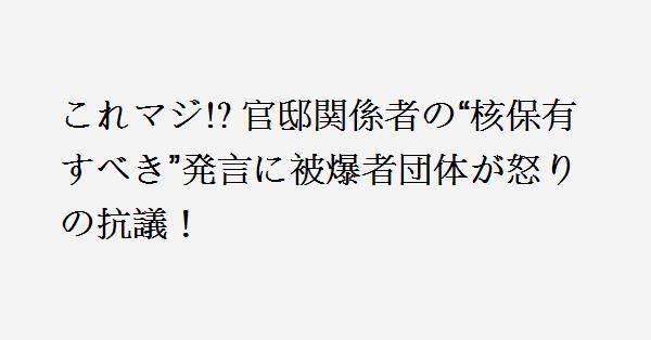2、非核三原則に反することを言うと、それがオフレコの場での個人的見解であっても弾圧されるというこの国の言論空間にこそ、驚きと憤りを禁じ得ないけどねそもそも非核三原則は60年も前に佐藤栄作内閣が言い出したものであって、国際的な約束事でもなければ、法律でもないこんなもので現内閣を縛ろうとすることは、法治国家としてどうかと思うよそこまで大事なら改憲して憲法にでも明記すればいい