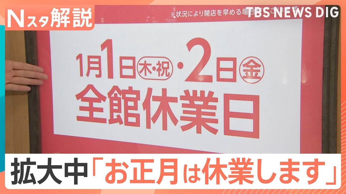 ニュース記事によれば、年末年始の長期休暇に伴い、小売業や飲食業界で「お正月は休業します」という動きが広がっています。具体的に、東武百貨店は49年ぶりに1月1日と2日を休業すると発表し、スーパーのサミットも多くの店舗で1月1日から3日まで休業します。飲食業界では、丸亀製麺が従業員の家族時間確保を考慮し、年始の営業を1月3日から開始。