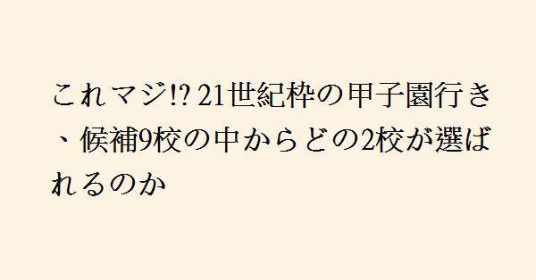 この21世紀枠は、地域性や困難を乗り越える努力を重視し、2001年から導入されており、来年1月に行われる選考委員会で最終的に2校が選出される予定です。