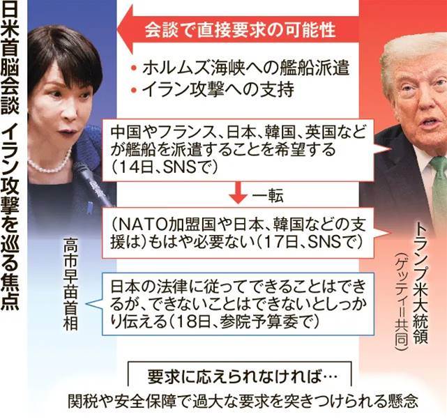 10月19日、日米首脳会談でホルムズ海峡における艦船派遣を巡る交渉が行われる見込みだ。トランプ大統領は当初「支援不要」としたが方針を転換し、日本に派遣を要請する可能性がある。一方、日本は戦闘地域への派遣が法的に困難であると米側に伝達済み。欧州や韓国、中国も同様に消極的姿勢を示している。会談ではトランプ氏の要請をどう扱うか、またそれが日米関係や通商交渉へ及ぼす影響が課題となる。日本政府は艦船派遣を回避しつつ87兆円規模の対米経済協力や防衛計画参画を示し、関係維持を図る意向だ。