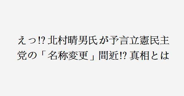 2、恐らく北村議員が言う通りになるだろう。立憲民主党には、政策に一貫生がなく、議員定数削減も元々は立憲民主党が言い出した政策で、現在は大反対だ、こんな己が言い出した事に責任を持てない政党は淘汰されるべきで、来春でも解散、選挙があれば声高々に、まず維新が立憲を口撃するだろうし、それに自民党が続いて口撃するし、高市政権の高い支持率の前には、対案なしの批判ばかりでは、国民から淘汰されて、大きく議席を減らすと思います。だから大敗の後に、出直すためにも党の改名は必要であり、私は立憲民主党改め、無対案批判党へ改名すれば、お似合いだと思うし、党名に党の特徴が出ていると思います。